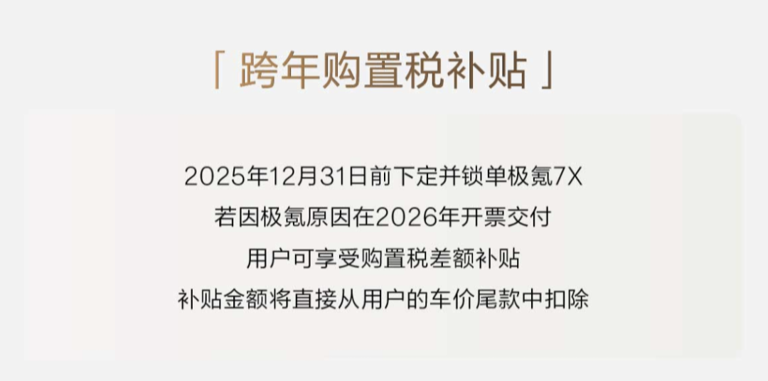 旗下几乎所有车型,只要你能够在2026年到来之前的那一刻下单,那么跨年所产生的购置税统统由极氪买单。