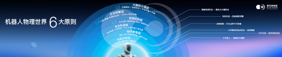 ● L5|数据安全层:大脑与隐私的最高级守护。安全的最顶层来自数字世界:隐私保护、防攻击、防入侵。本地推理、数据不上云、端到端加密、NOC 防火墙与安全启动机制共同构建机器人“大脑的护城河”。不仅动作安全、决策安全,也保障数据与模型的完整性。从最底部的 “不伤人”,到中层的 “不做错、不想错”,再到最高层的 “不泄漏、不被攻破”。