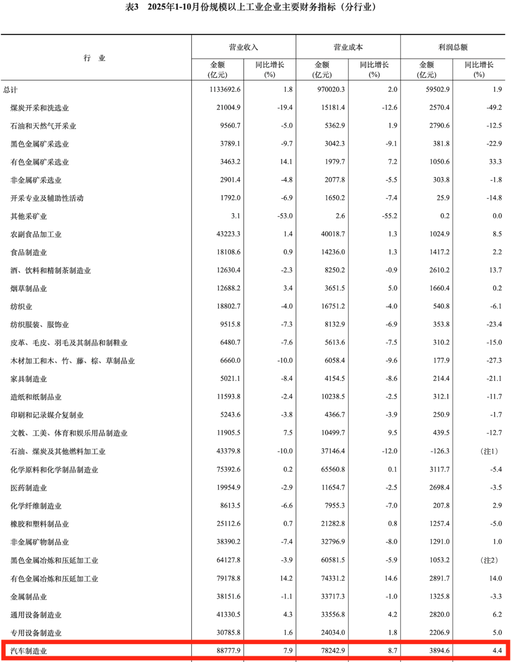 数据更能直观体现趋势变化。在“六十天账期承诺”落实前,1—5月,汽车制造业营业收入41283.3亿元,同比增长7.1%;但利润总额仅1781.4亿元,下滑11.9%,增收不增利特点显著。而据最新数据,1—10月,汽车行业收入88777.9亿元,同比增7.9%;利润总额3894.6亿元,同比增长4.4%,实现营收、利润双增长。