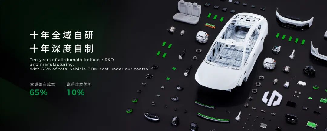 自研自制体系还带来巨大的成本优势,零跑实现65%BOM成本整车核心零部件自研自制,通过高度集成化的设计,在优化整体性能和驾驶体验的同时,最大程度实现成本可控,削去层层溢价,从而打造更具品价比的产品,让物美价廉成为常态,直接惠及消费者。