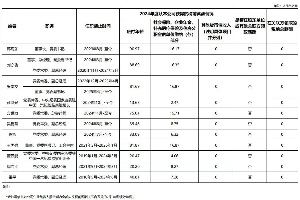 根据披露,一汽集团董事长邱现东的年薪为90.97万元,在一汽、东风两家汽车央企的高管中,是最高的。