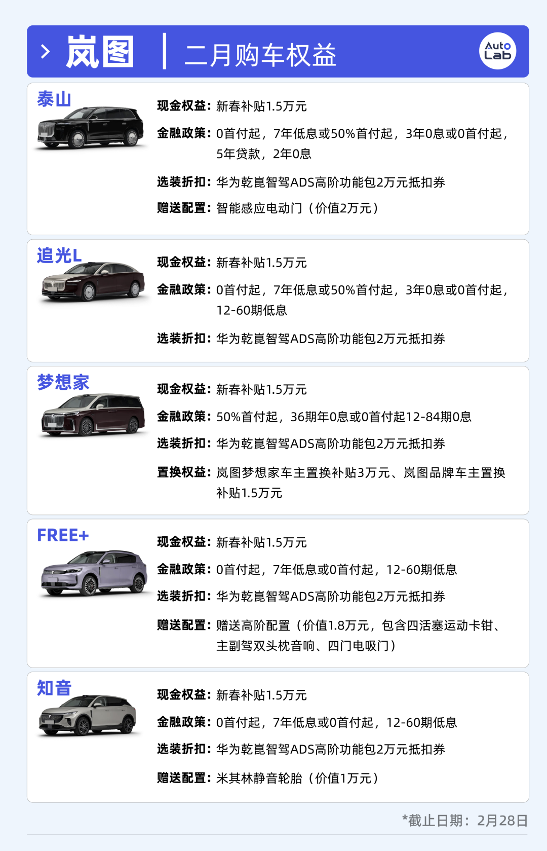 我们汇总了本月各大车企的权益,供春节期间有购车需求的朋友们一定的参考。