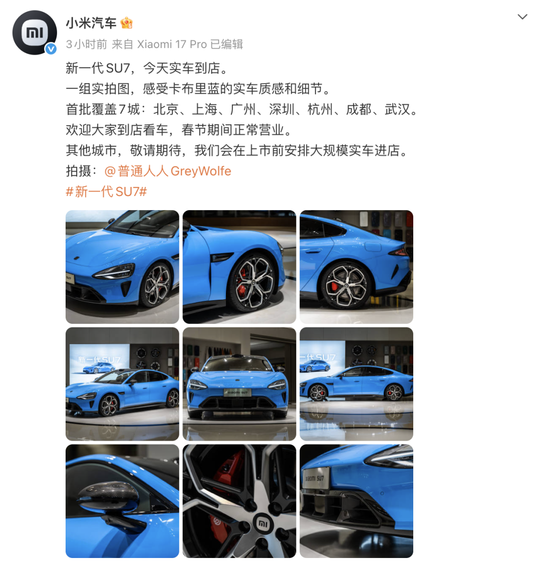 同时,全新一代SU7展车也已经于2月13日起陆续进店,目前已经开启了预定,并预计会在四月正式上市。