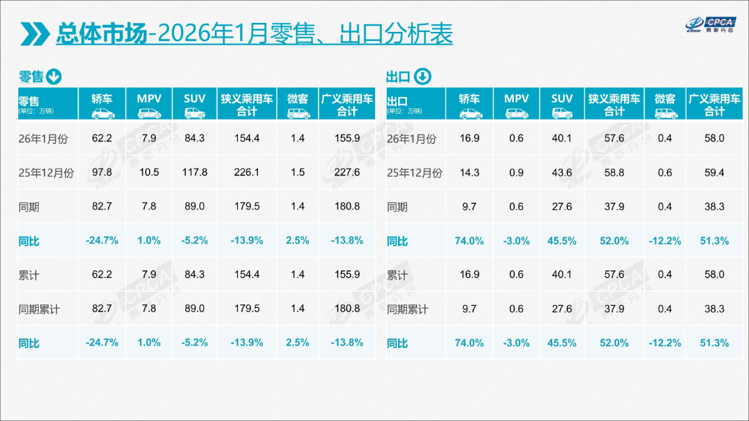 春节前夕,中汽协就曾踩“点”给出了今年一月车市的产销情况。很显然,不管是出于春节临近造成的客源流失,还是因补贴政策调整带来的消费观望情绪发酵,2026年的市场开端可算不上明朗。