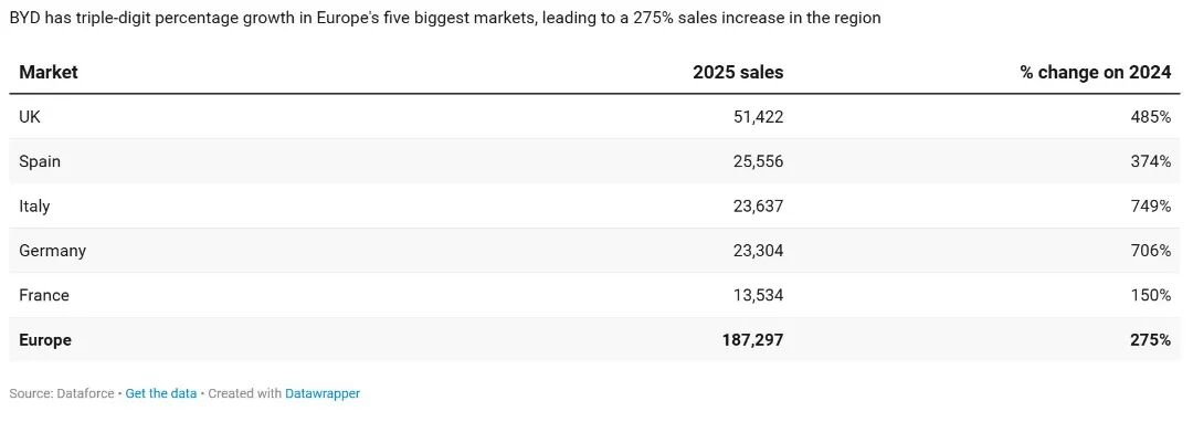 比亚迪1月销量17,630辆,同比增长173%,在德国市场更是以2,069辆的注册量首次超越名爵,同比增长1000%。