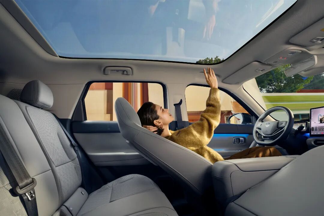 相比之下,令我更为惊喜的是,零跑A10在拥有全景玻璃天幕的基础上,还给予了电动遮阳帘,进一步展现出诚意满满。