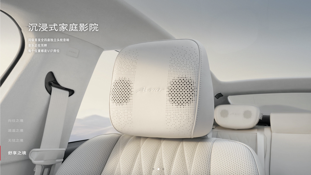 更进阶的车型上,则搭载4-6个头枕音响,可以实现前后排的声区分离,以及多座位相对独立的声场和分区音效,基本解决多人出行听觉需求不统一的问题。