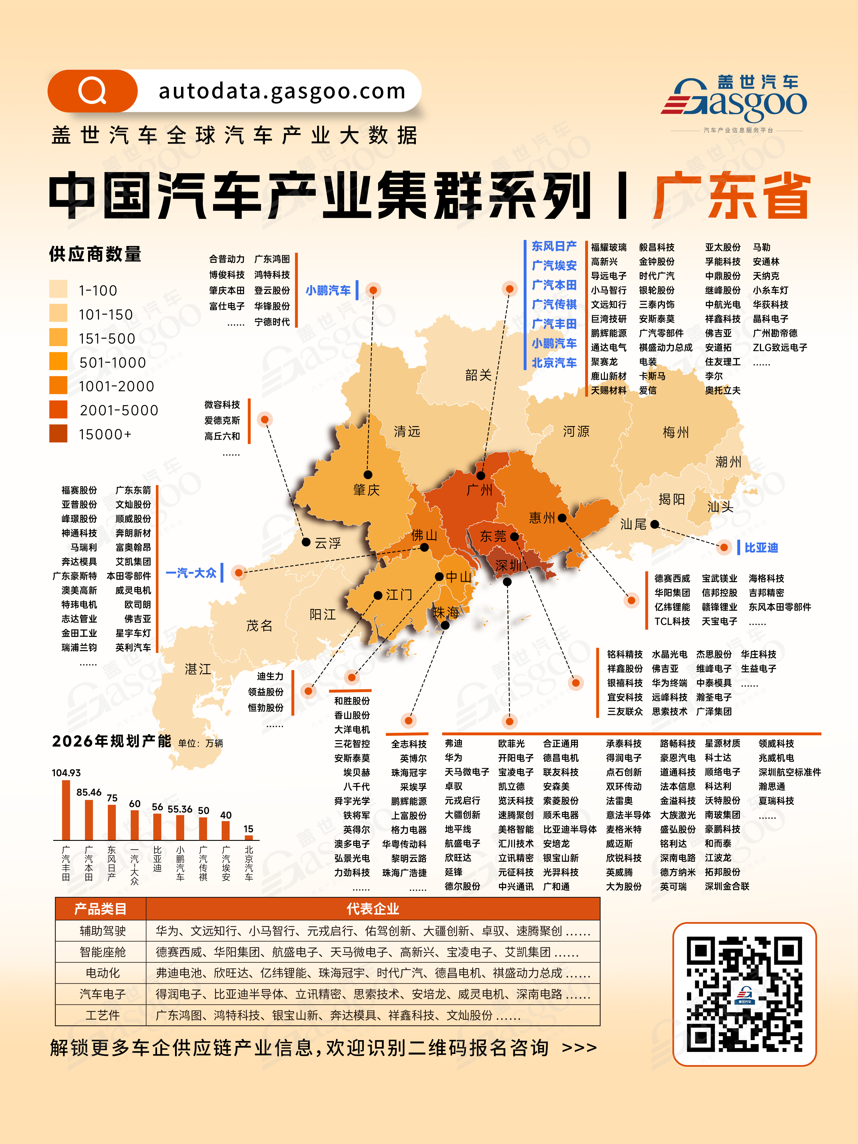 从盖世全球汽车产业大数据地图来看,广东汽车产业集群已形成以核心城市引领、产业链协同推进、创新要素持续集聚的发展格局,在中国汽车产业向高端化、电动化转型过程中占据重要位置。