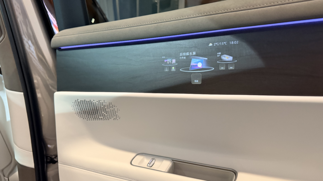 新车首发搭载了“Smart Surface魔术屏”的技术,看起来就像把仪表信息直接藏进了木纹饰板里。
