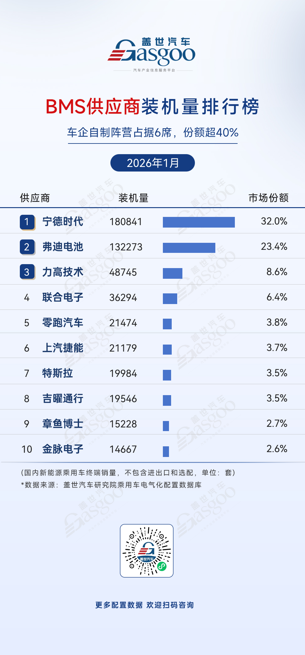 弗迪动力,2026年1月装机量131575套,市场份额25.6%。