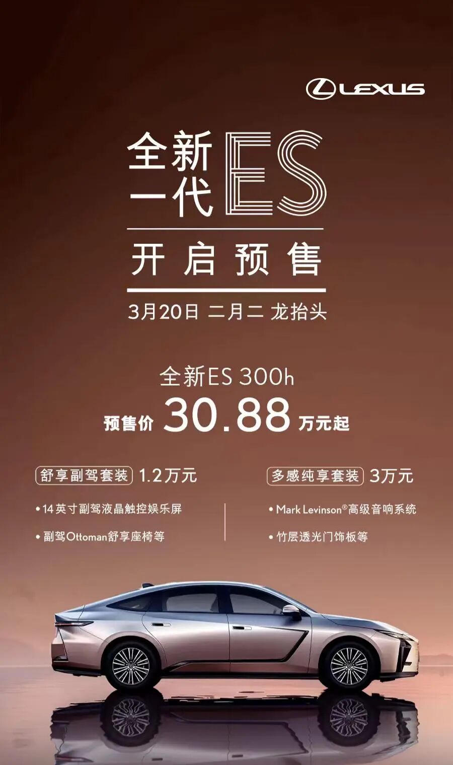3月20日,第八代雷克萨斯ES开启预售,这款备受期待的新车在2025年4月上海车展首发亮相一年后才姗姗来迟。