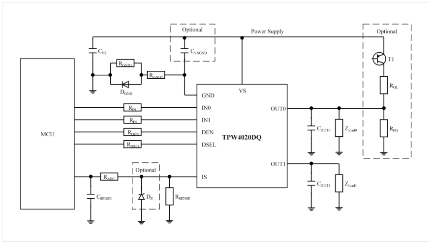 TPW4020DQ将过流/短路限流、绝对与梯度过热保护、输出开路检测、丢地/丢电源保护、过压/欠压保护等完备的诊断与保护功能集成于一体。在实际应用中,扮演着三重角色——大功率负载驱动器、系统状态监测器的和故障风险熔断器。