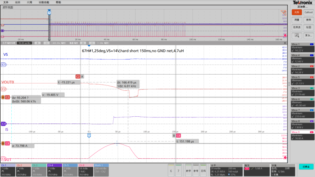 图3、输出带4.7uH hard short短路测试
