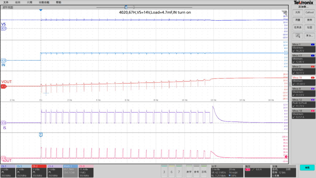 图4、TPW4020DQ输出带4.7mF电容上电