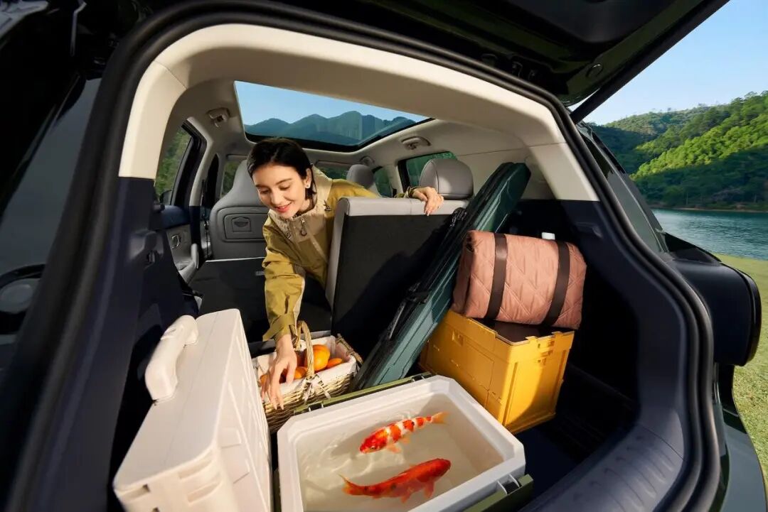 全车规划34处人性化储物空间,主驾靠背配备自带双挂钩与镂空杯架的折叠小桌板,为后排乘客提供便捷的随行桌面。后备厢基础容积达602L,放倒后排座椅后可拓展至1549L;行业首创的106L可冲洗下沉储物舱,支持高压水枪冲洗与干湿分离,能妥善安置生鲜、露营湿物、泥鞋等物品,大幅提升用车场景的实用性。