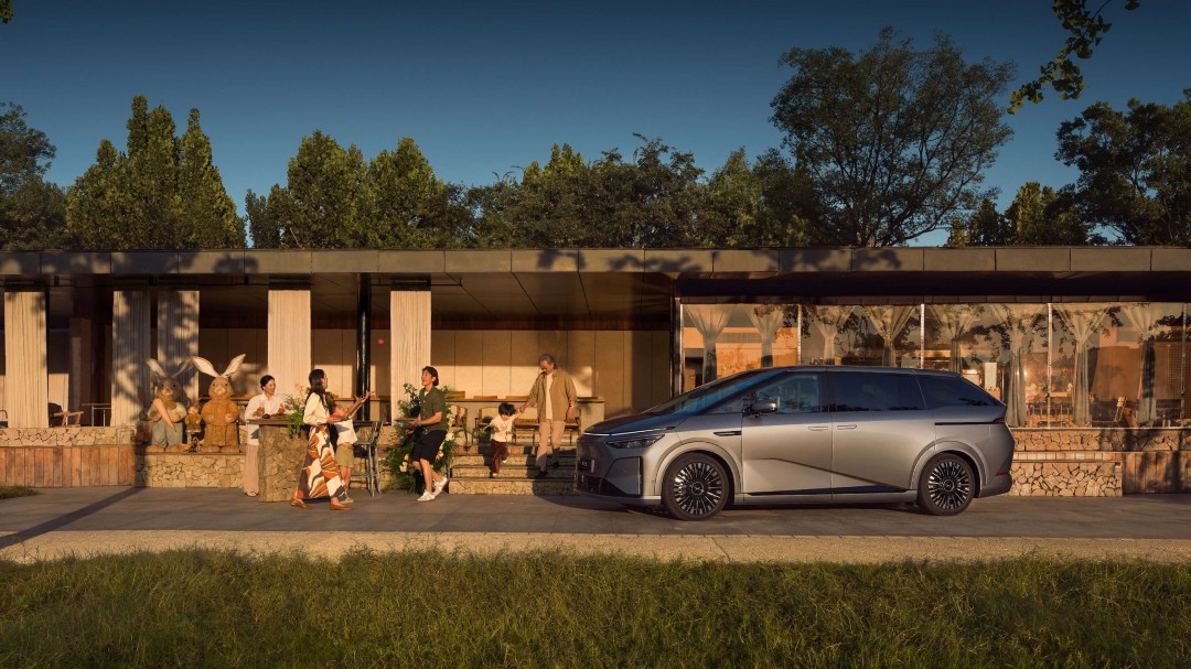 车身侧面,新车保留了棱角分明的“超现实主义”线条和內凹式筋线,力量感十足。双侧侧滑门得以保留,并配备了新样式的19英寸密条辐轮圈。车身尺寸方面,长宽高分别为5316/1988/1785mm,轴距为3160mm。由于包围套件的调整,车长相比老款纯电版增加了23mm。车尾部分,新车维持了标志性的斜后窗与贯穿式尾灯设计,尾灯与侧滑门滑轨形成一体式连接。多层次的后备厢设计与内凹式牌照框,增强了车尾的立体感。此外,新车提供星云紫、极光青、暗夜黑、星舰灰(哑光)、新月银、星云白共6种车身颜色。