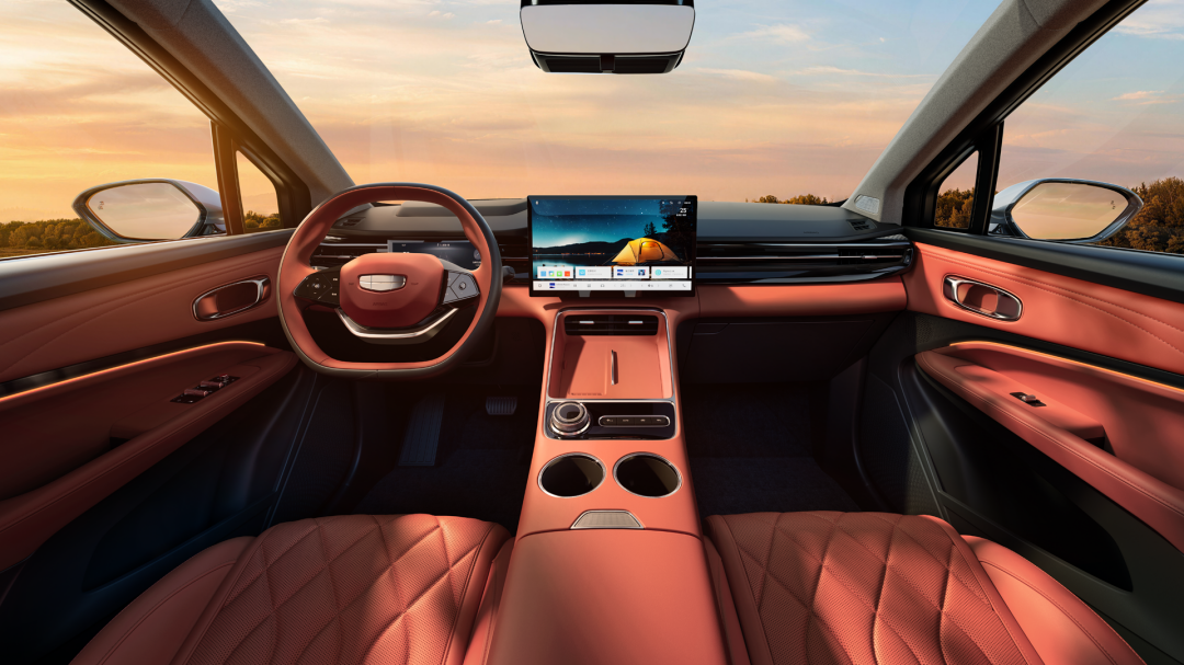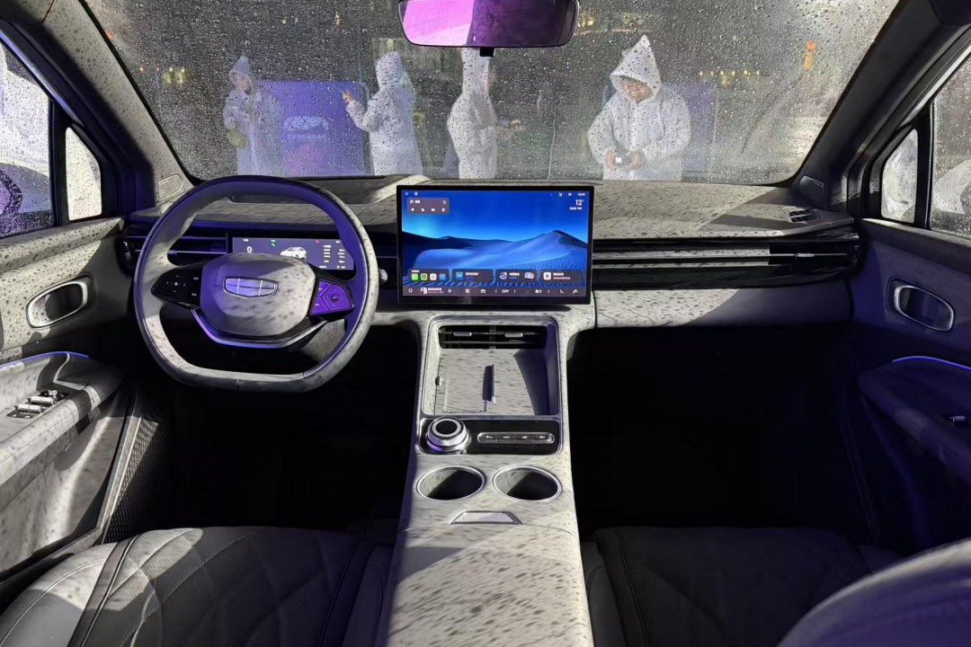内饰方面,博越REV采用环抱式轻奢座舱布局,整体风格简洁而不失精致。中控区域配备8.8英寸全液晶仪表与14.6英寸悬浮式中控屏,搭配15英寸超清HUD抬头显示系统,形成三屏联动的沉浸式交互体验。座舱内还配备128色氛围灯,可根据驾驶模式与用户喜好自由调节,营造出富有情感温度的驾乘氛围。