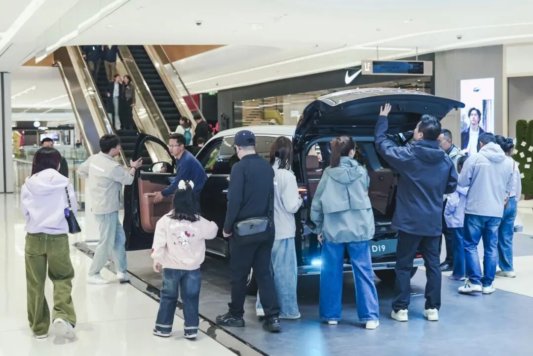 目前D19正在全国13个城市的核心门店巡展,主题叫“悦享新境”。实车一到店,直接引发排队看车的场面。全尺寸旗舰的姿态,加上全球首发的增程500km纯电续航,确实有排面。