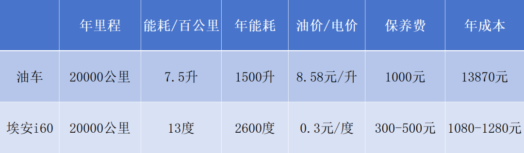 这样对比下来,开埃安i60一年用车成本比油车一个月还省,开一年省下近1.3万,开五年省下一台车的首付!
