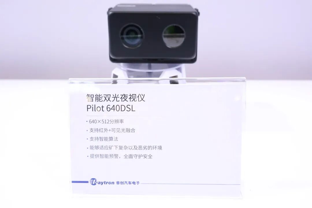 红外车辅摄像头Pilot640拥有640×512分辨率,提供120°×92°、62°×50°及32°×26°多视场角选择,覆盖从超广角到长距离的差异化感知需求;支持GMSL1/GMSL2视频输出与标准FAKRA接口,工作温度覆盖-40°至85°,基于场景的非均匀校正技术让行车中红外摄像头不再“眨眼”。智能双光夜视仪Pilot 640DSL以640×512分辨率支持红外与可见光融合,搭载智能算法,能够适应矿下复杂恶劣环境并提供实时预警。