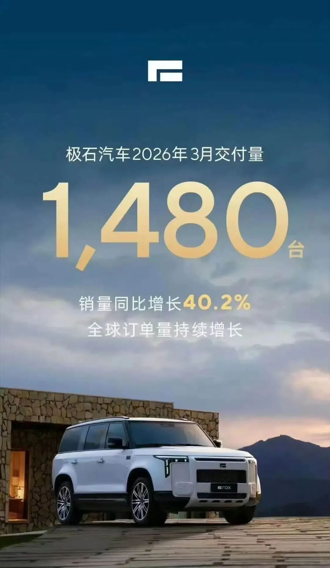 智己汽车3 月销量 7187 台,同比去年 3 月有约 42.9% 的增幅。