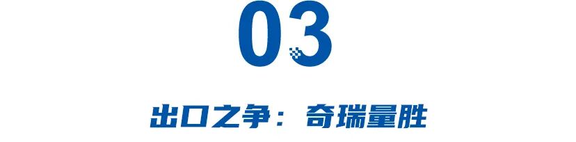 出口赛道的竞争最为胶着。奇瑞在绝对数量上占据上风——3月出口14.88万辆,同比增长72%,刷新中国品牌单月出口纪录;一季度累计出口39.33万辆,同比增长53.9%。