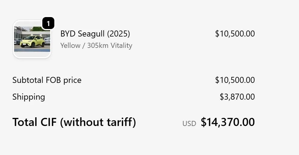 该平台2025年向美国客户交付了35辆电动车,即便最便宜的车型——金彭AMY——FOB价格仅为3,890美元(约合人民币2.67万元),但加上运费和关税后,终端成本急剧攀升。