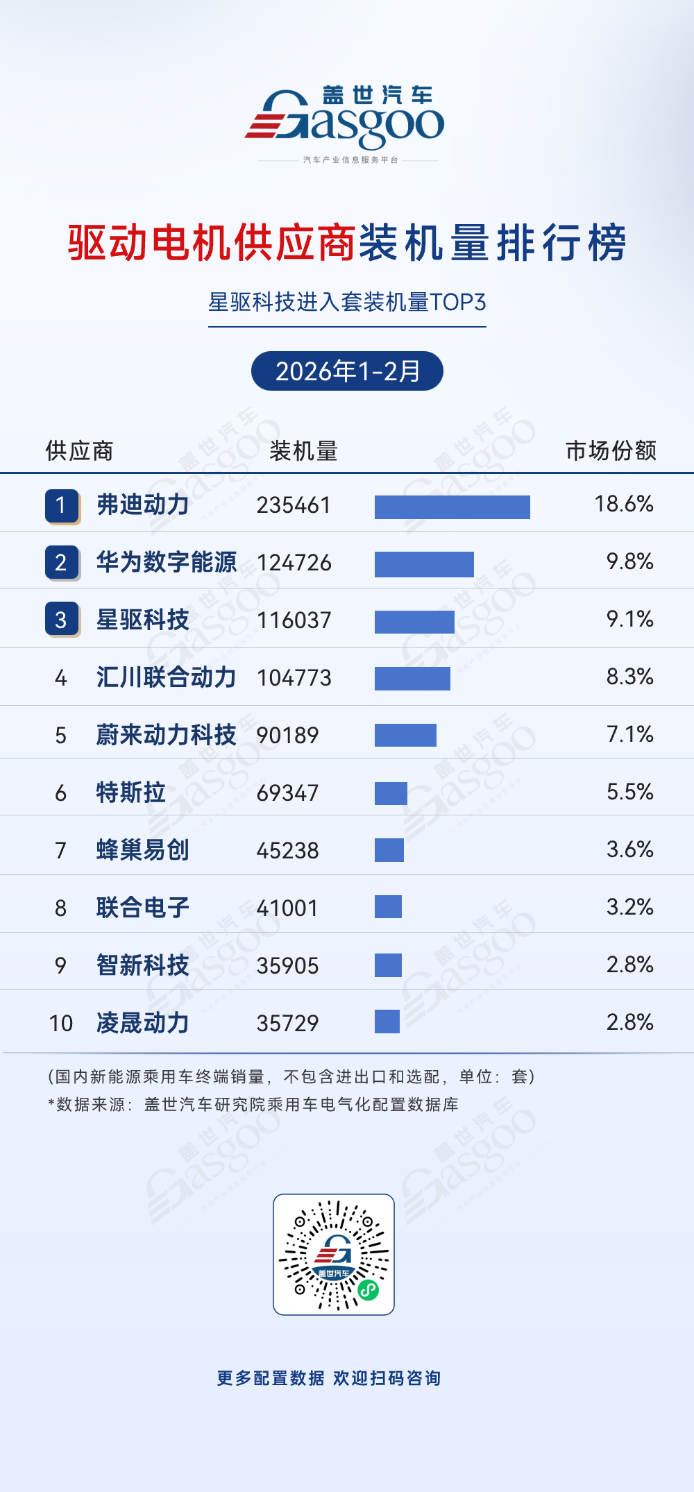 弗迪动力,2026年1-2月装机量235484套,市场份额18.6%。