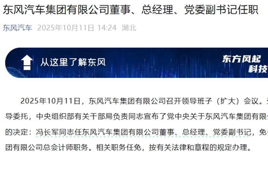 10月11日,据东风汽车微信公众号消息,东风汽车集团有限公司召开领导班子(扩大)会议。受中央组织部领导委托,中...[详细]