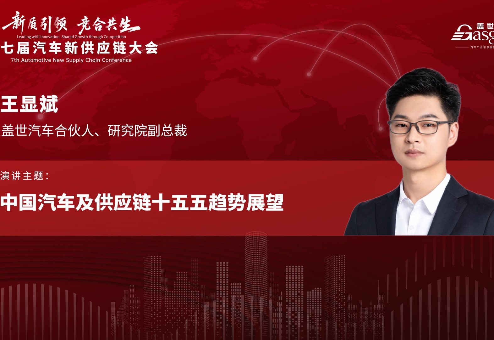 第七届汽车新供应链大会盖世汽车合伙人、研究院副总裁王显斌:中国汽车及供应链十五五趋势展望...[详细]
