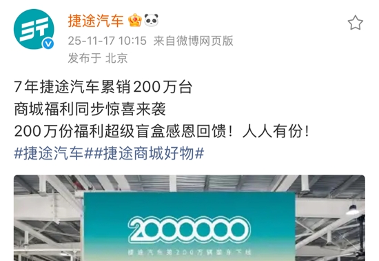 今日,捷途汽车正式宣布其累计销量突破200万辆,从品牌推出至达成这一成绩仅用时7年。该品牌是奇瑞控股于2018年推...[详细]
