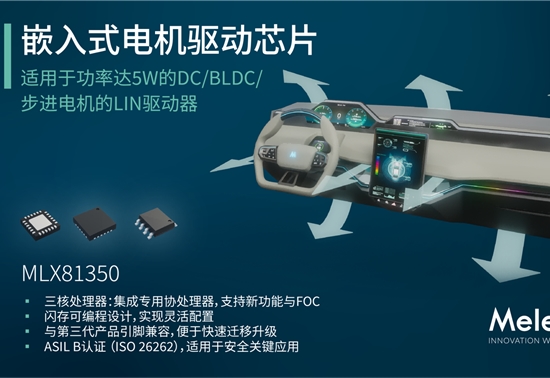 2025年11月07日,比利时泰森德洛·哈姆——全球微电子工程公司Melexis宣布,推出第四代汽车LIN电机驱动器MLX81350...[详细]