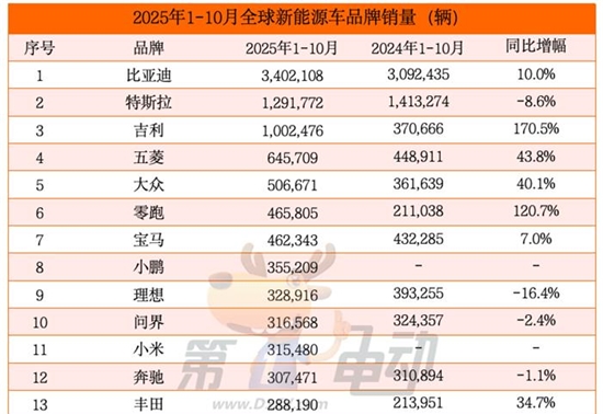 Clean Technica数据显示,2025年1-10月,全球新能源车销量达1646.8万辆,同比增长22.3%。其中,9月全球新能源车销...[详细]