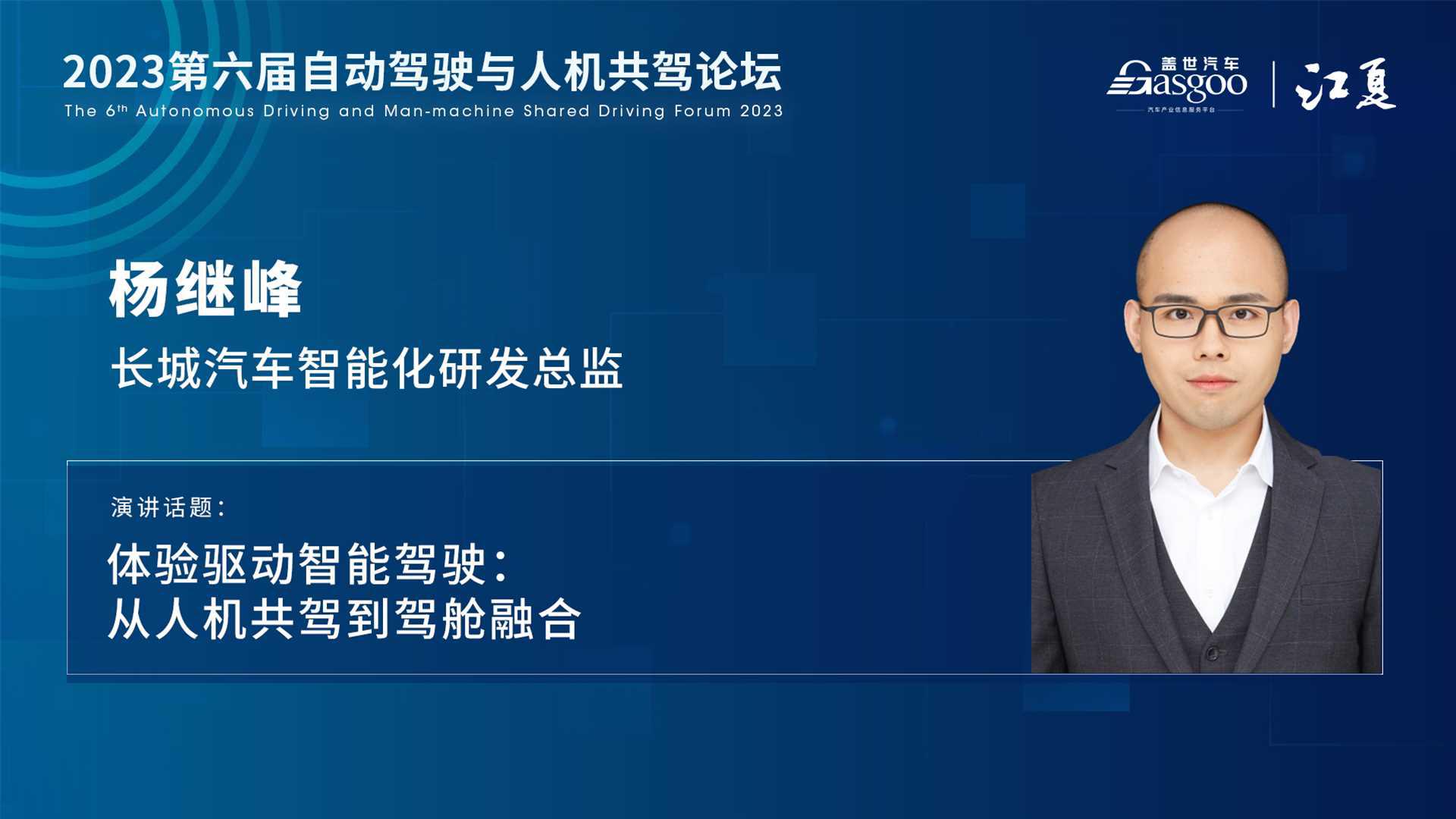 2023第六届自动驾驶与人机共驾论坛长城汽车智能化研发总监 杨继峰:体验驱动智能驾驶:从人机共驾到驾舱融合...[详细]