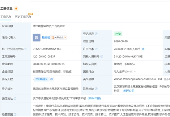 2月24日,据天眼查官网显示,近日,武汉蔚能电池资产有限公司(以下简称“蔚能电池”)发生工商变更,新增合肥建...[详细]