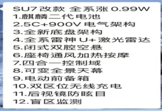 上市近两年后小米SU7将迎来新款车型。近日,多位汽车博主爆料,称SU7改款车型或将全系涨价1万元,同时带来12项功...[详细]