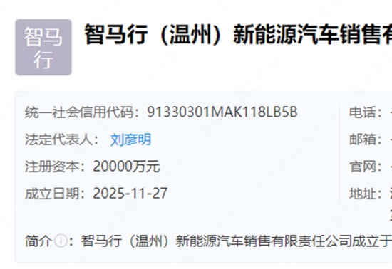 11月28日消息,智马行(温州)新能源汽车销售有限责任公司于近日成立,法定代表人为刘彦明,注册资本2亿元人民币...[详细]